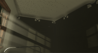 The hospital room environment is initially presented as a warm, homely space. The room's colours, and visibly wide space provide a comforting atmosphere. The room makes heavy use of Unity HDRP volumetric lights in an attempt to recreate some of the reference images and add to the atmosphere of a historic hospital ward with some dust particles floating around in the air. Extra dust particle effects were added to further emphasise a relaxing 'dusty room' look.